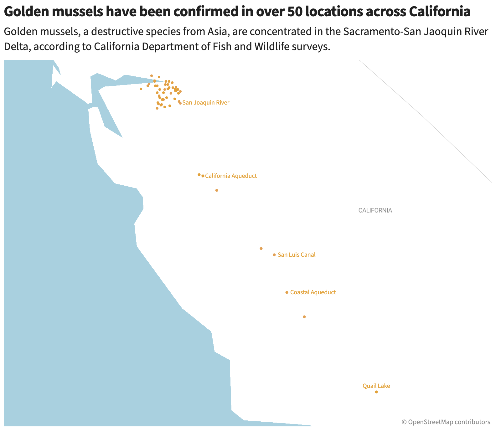 Golden mussels, native to Asia, are small but devastating. They multiply rapidly, clog pipes and pumps, damage power plants, and disrupt ecosystems. Once established, eradication is impossible. Now, state agencies are focused on slowing their spread and reinforcing water infrastructure — especially smaller pipes upstream — to minimize disruption to California’s vast water delivery systems.
